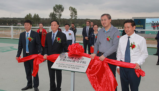 太原理工大學玉龍國際賽馬學院是太原理工大學與山西玉龍馬業(yè)發(fā)展有限公司,本著優(yōu)勢互補、強強聯(lián)合的原則共建的培養(yǎng)賽馬業(yè)和馬術(shù)界高端管理人才辦學機構(gòu)。2018年8月,雙方簽訂了共建“玉龍國際賽馬學院”合作協(xié)議,為中國馬業(yè)和教育領域,雙雙填補了國內(nèi)空白。2018年9月雙方在玉龍馬業(yè)舉辦了掛牌儀式。