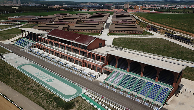 玉龍馬會(huì)注冊(cè)資本1800萬元,位于山西右玉縣玉龍文體產(chǎn)業(yè)園。目前,玉龍文體產(chǎn)業(yè)園擁有1600米國際標(biāo)準(zhǔn)賽道(沙道)1條,能容納1萬名觀眾的綜合看臺(tái)1座,能容納500匹參賽馬入駐的馬房17棟;擁有大屏幕和全球賽馬網(wǎng)絡(luò)實(shí)時(shí)直播系統(tǒng)1套;擁有60×90米、30×60米,162×63米和1000×6米馬術(shù)盛裝舞步、場(chǎng)地障礙和越野障礙等馬術(shù)三項(xiàng)賽場(chǎng)地;擁有運(yùn)動(dòng)員公寓、辦公室和功能性用房等設(shè)施,是國內(nèi)場(chǎng)地場(chǎng)館齊全、設(shè)施設(shè)備完備,賽事功能完善的馬術(shù)和速度賽馬中心。
